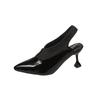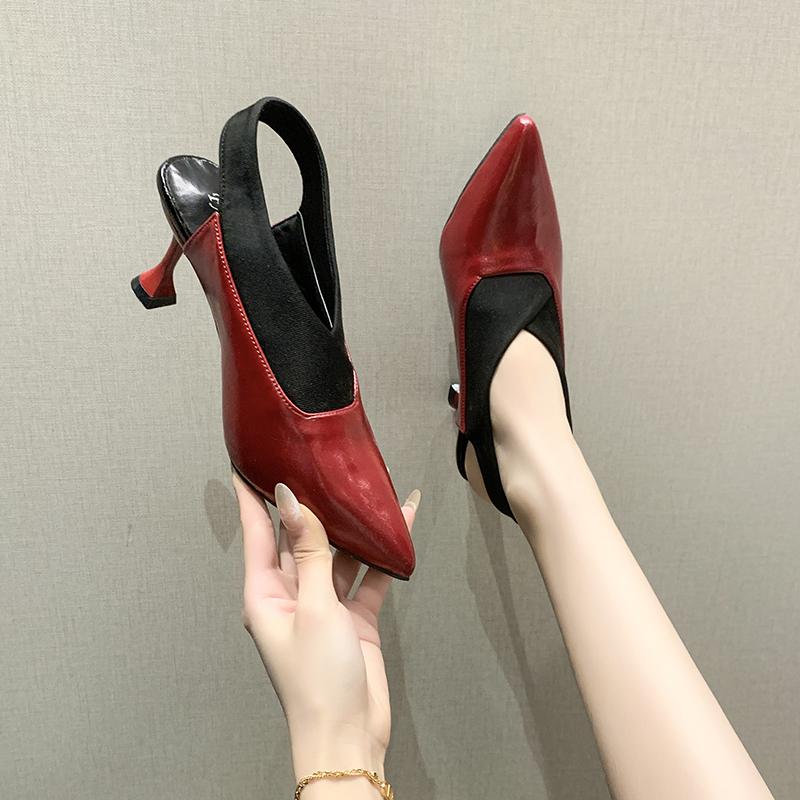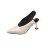 Fashion Beige Heeled Sandals Large Size Shoes Closed Toe 2025 Women's Shallow Mouth Black Big Stiletto Sexy Pointed New Elastic Band