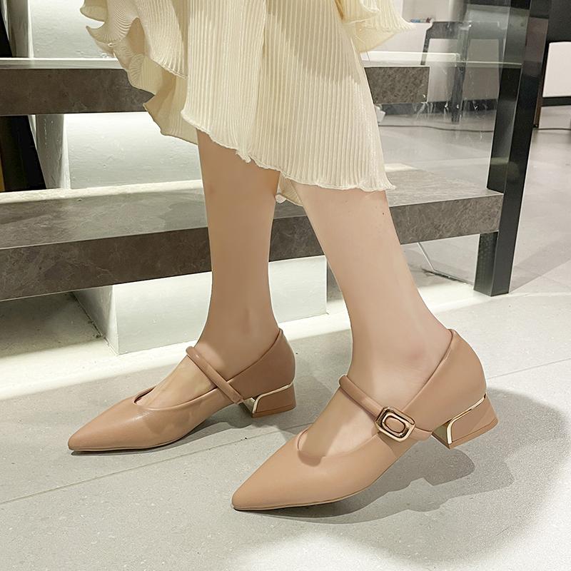 Fashion Women Shoes Pointed Toe Chunky Sandals 2024 Fashion Spring Dress Shoes Elegant Buckle Pumps Outdoors Solid Color Female Shoes
