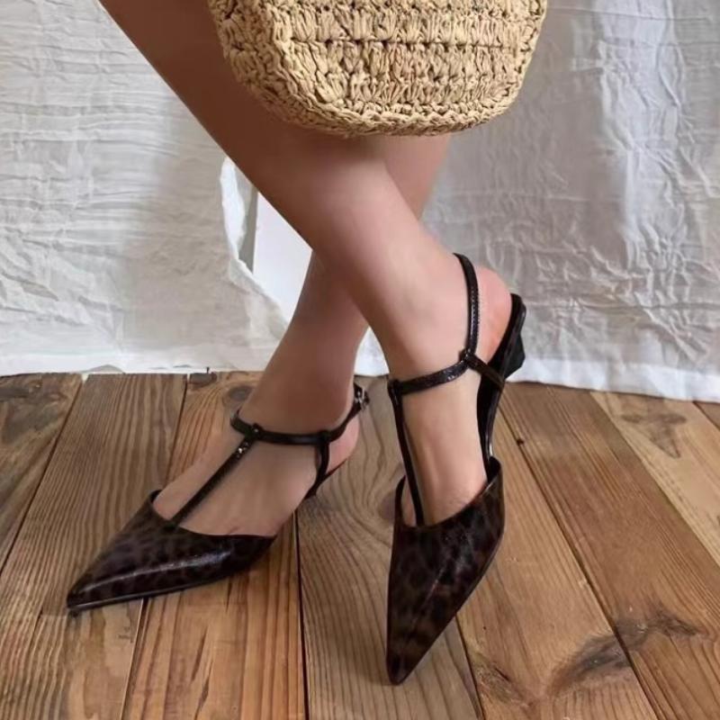 Módní kancelářské boty s leopardím potiskem a špičatou špičkou, designové mělké jehlové podpatky, dámské lodičky na vysokém podpatku s páskem kolem kotníku, elegantní sandály na nízkém podpatku
