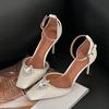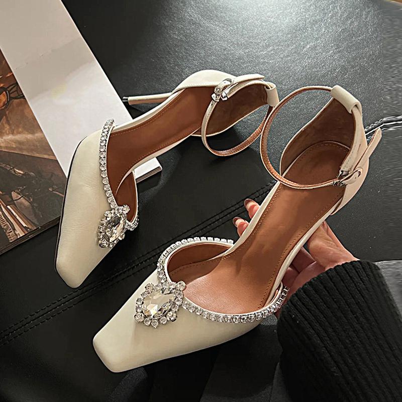 Fashion Liyke Designer Crystal Rhinestone Women's Pumps Silk Square Toe Slingback Sandals White High Heels Stilettos Wedding Prom Shoes
