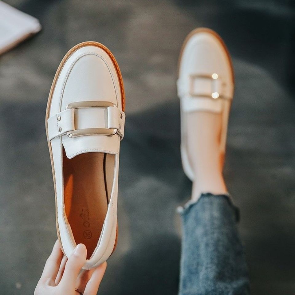 Fashion Shoes For Women Black Luxury Leather Casual Woman Pumps Square Heels Round Toe E Genuine Mark Wholesale Elegant Dress Chic Point