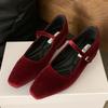 Fashion New Fashion Buckle Strap Ladies Flats Mary Janes Shoes Female Designer Shallow Footwear Silk Women Flat With Shoes Red