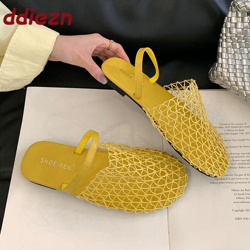 Módní letní plážové nazouváky pantofle sandály boty pro ženy mulky dámské kulatá špička módní síťovina prodyšné dámské ploché pantofle boty