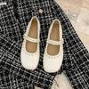 Fashion Spring new single shoes women's round head shallow mouth rivets a word buckle soft sole anti-slip wear-resistant flat shoes