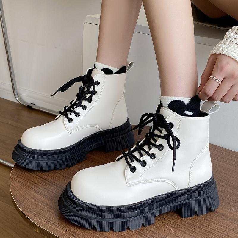 Fashion 2025 New Women's Platform Ankle Boots White Pu Leather Thick Sole Combat Booties Woman Spring Autumn Non Slip Motorcycle Boots