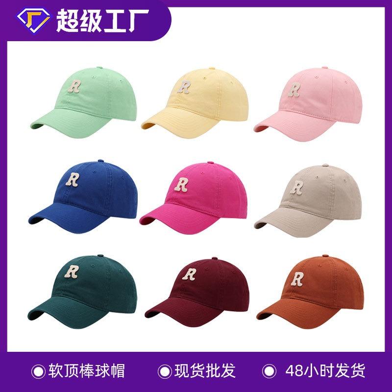 Versatile face small R letter baseball cap curved brim sunshade autumn and winter new trendy widened sunscreen cap