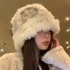 Rabbit fur knitted plush hat women's autumn and winter warm plush hat big head circumference showing face small bucket hat wool hat tide