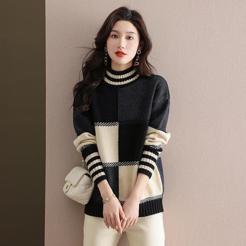 Winter top high-end sweater women's autumn and winter new thin knitted sweater with thickened bottoming shirt