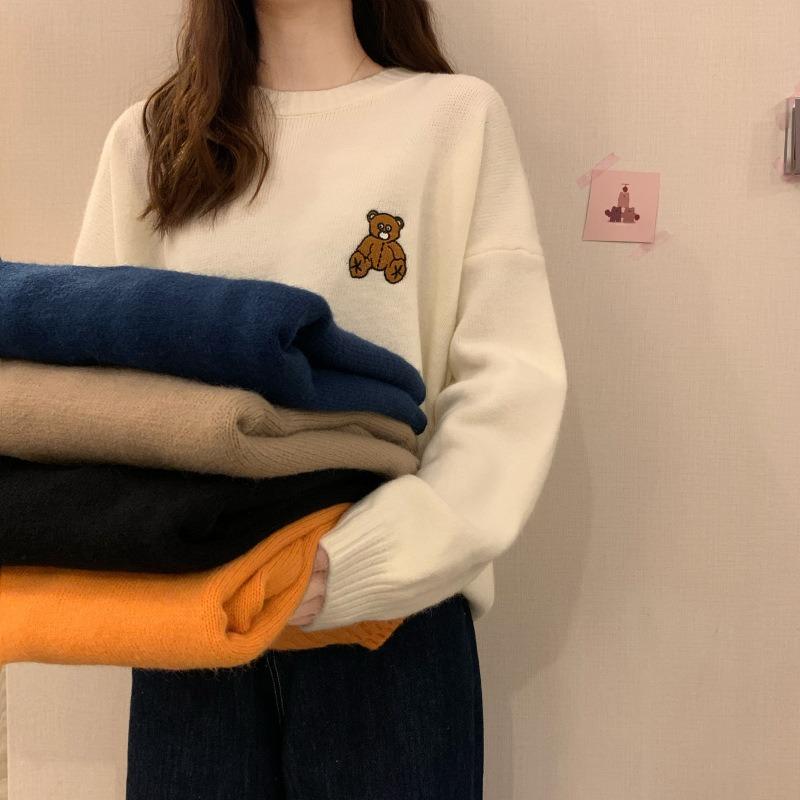 Sweater women's autumn and winter loose outer wear inside student sweet retro lazy wind gentle spring and autumn top