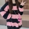 Autumn and winter sweet wind imitation mink fleece soft waxy sweater women's new lazy wind striped knitted pullover women's
