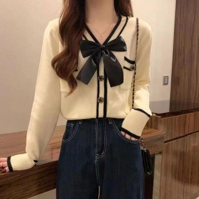 Autumn and winter new gentle college style knitted cardigan sweater jacket bow women's short top