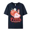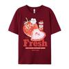Fresh Strawberry American Retro Creative Printed Short Sleeved T-shirt Women's Trendy Brand Loose Versatile Half Sleeved Shirt