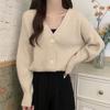 Vintage v-neck knitted cardigan jacket spring and autumn new loose lazy wind soft waxy sweater women