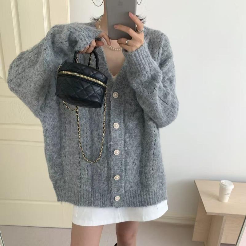 Loose sweater women's coat autumn and winter new casual lazy wind outside wear V-neck knitted cardigan top