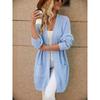 Long autumn and winter knitted cardigan women's loose splicing pocket V-neck knitted sweater women's coat