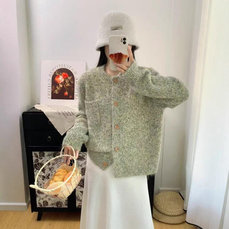 Flower thread knitted cardigan women's clothing autumn and winter new lazy wind loose retro sweater jacket women