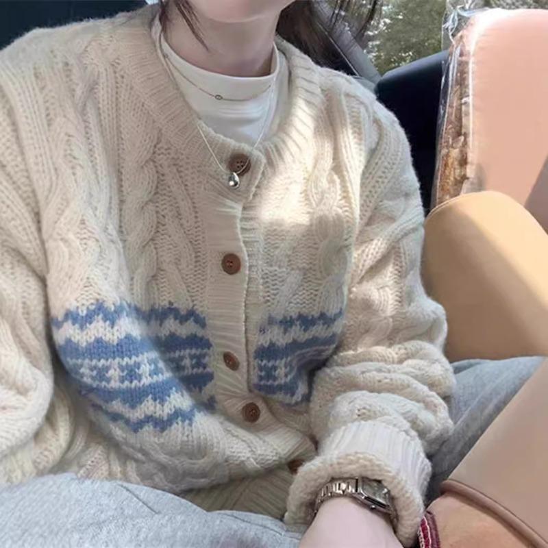 Soft waxy retro twist knitted cardigan for women with autumn and winter new college style single-breasted loose sweater jacket