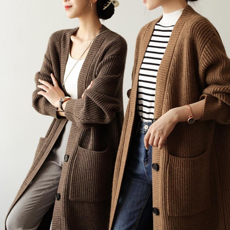 Thickened medium and long knitted cardigan jacket for women's autumn and winter retro loose lazy style medium and long sweater