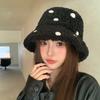 Korean New Hat for Women with High End Fashion Polka Dot Plush Fisherman Hat for Winter Windproof and Warm Face Showing Small Basin Hat
