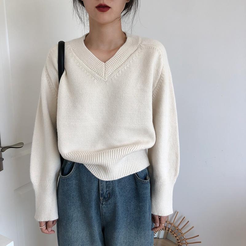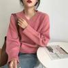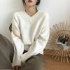 Retro V-neck pullover sweater women's autumn and winter new lazy loose outer wear bottomed knitted sweater top