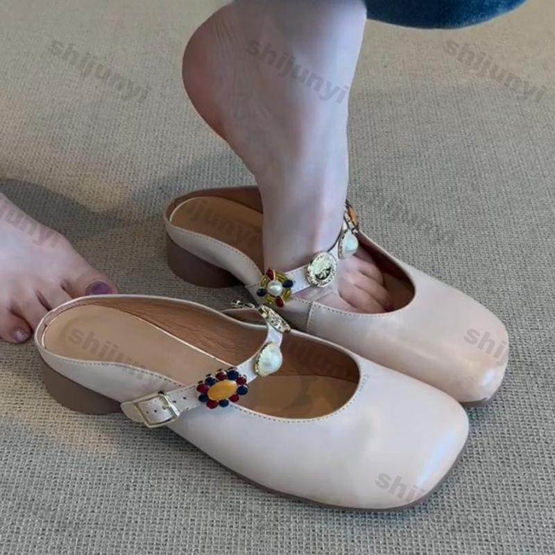 Fashion Fashion Women's Shoes Summer Outdoor Square Toe Half Slippers Chunky Chunky Mary Jane Shoes Lightweight Comfortable Sandals