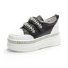 Fashion Top quality 7cm Skate Board Vulcanized Chunky Block Boot Bling Platform Wedge Sneakers Cow Genuine Leather Breathable lady Shoes