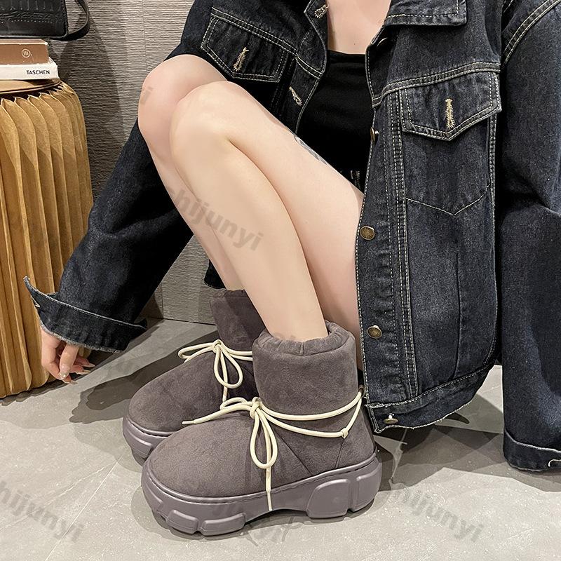 Fashion Women Thickened Plush Fur Warm Thick Bottom Snow Cotton Boots Women Outdoor Solid Color Winter Plush Warm Fluffy Platform Shoes