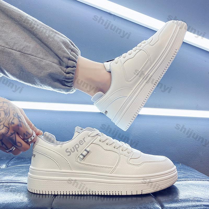 Fashion Men's White Sports Shoes 2025 Spring New Breathable Non Slip Platform Sneakers Comfortable Fashion Sewing Lace-up Casual Flats