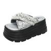 Fashion 8CM New Lace Peep Toe Slippers Platform Wedge Shoes Stretch Platform Flats Bling Crystal Women Sandals Leather Slip on Fashion