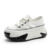 Fashion 7CM Air Mesh Genuine Leather Platform Wedge Chunky Sneaker Hollow Lace Up Fashion Women Summer Vulcanize Breathable Shoes