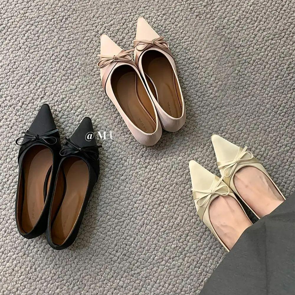 Fashion Bailamos Spring New Women Flats Fashion Pointed Toe Shallow Slip On Dress Shoes Low Heel Single Shoes Ballet Shoes Mujer