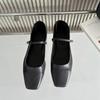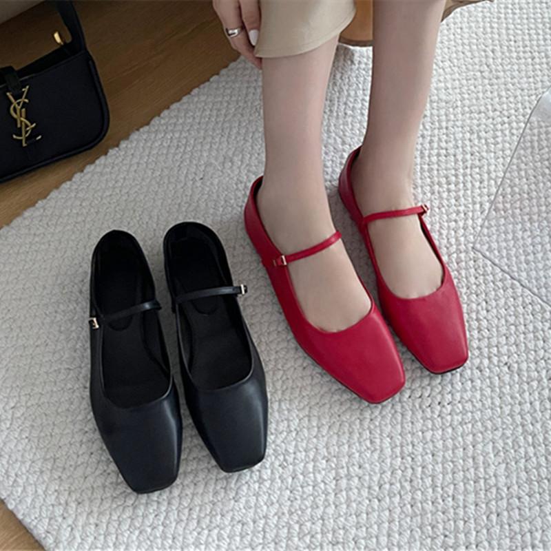 Fashion Bailamos Women Casual Ballet Flats Shoes 2024 Ins Real Leather Buckle Strap Soft Square Toe Low Heels Office Shoes Mujer