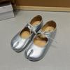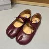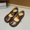 Fashion Bailamos Autumn Women Flat Shoes Fashion Split Toe Flat Heel Laofer Shoes Shallow Soft Leather Casual Outdoor Mary Jane Shoes