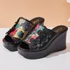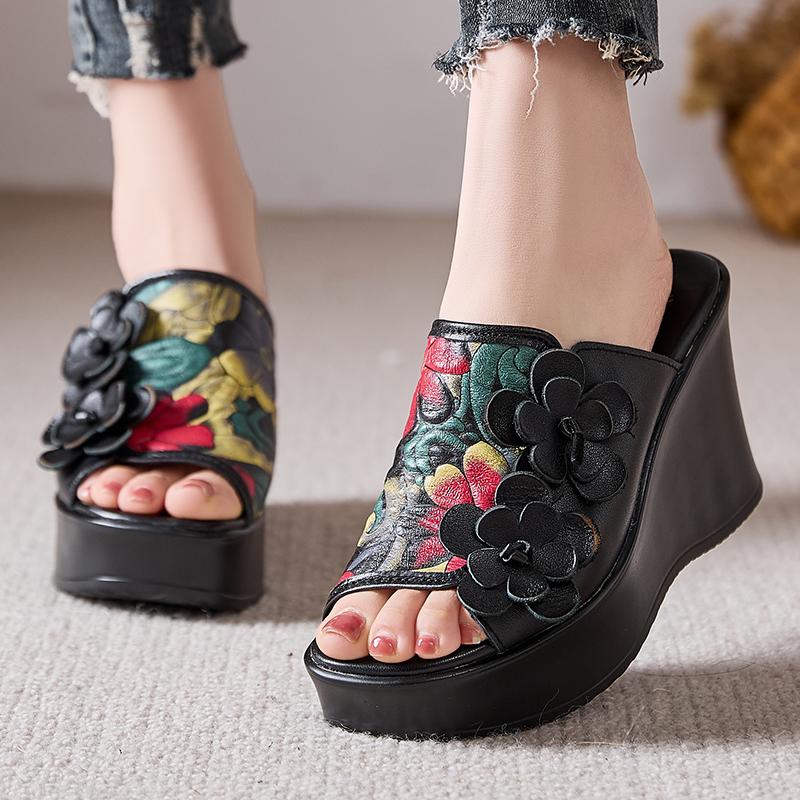 Fashion GKTINOO 2025 Genuine Leather Women Slippers Flower High Heels Wedges Summer Shoes Platform Retro Handmade Women Leather Slipper