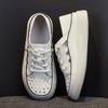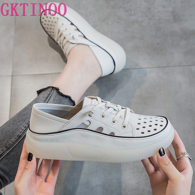 Fashion GKTINOO Loafers Ladies Genuine Leather Large Size Summer Hollow Lace-up White Shoes Women Fashion Casual Soft Sole Flat Shoes
