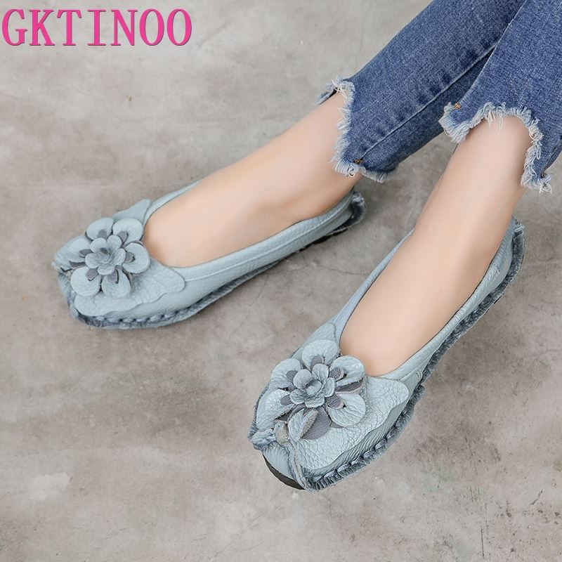 Móda GKTINOO 2025 Měkká pravá kůže Baleríny Dámské baleríny s květinami Dámská obuv Dámské designové mokasíny Nazouvací