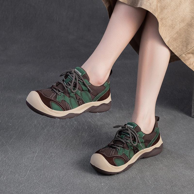 Fashion GKTINOO 2025 Autumn New Breathable Mesh Mixed Colors Sneakers Genuine Leather Lace-up Casual Women's Shoes