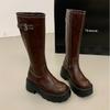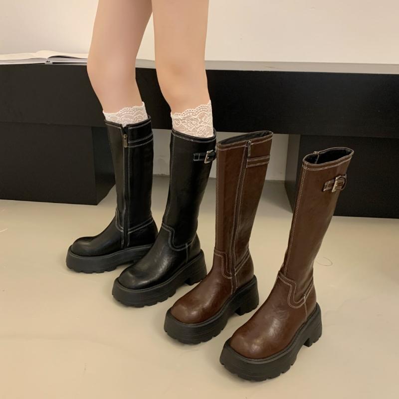 Fashion Vintage Platform Thick Heel Women Knee High Boots Fashion Ladies Belt Buckle Knight Long Booties botas de inverno feminina