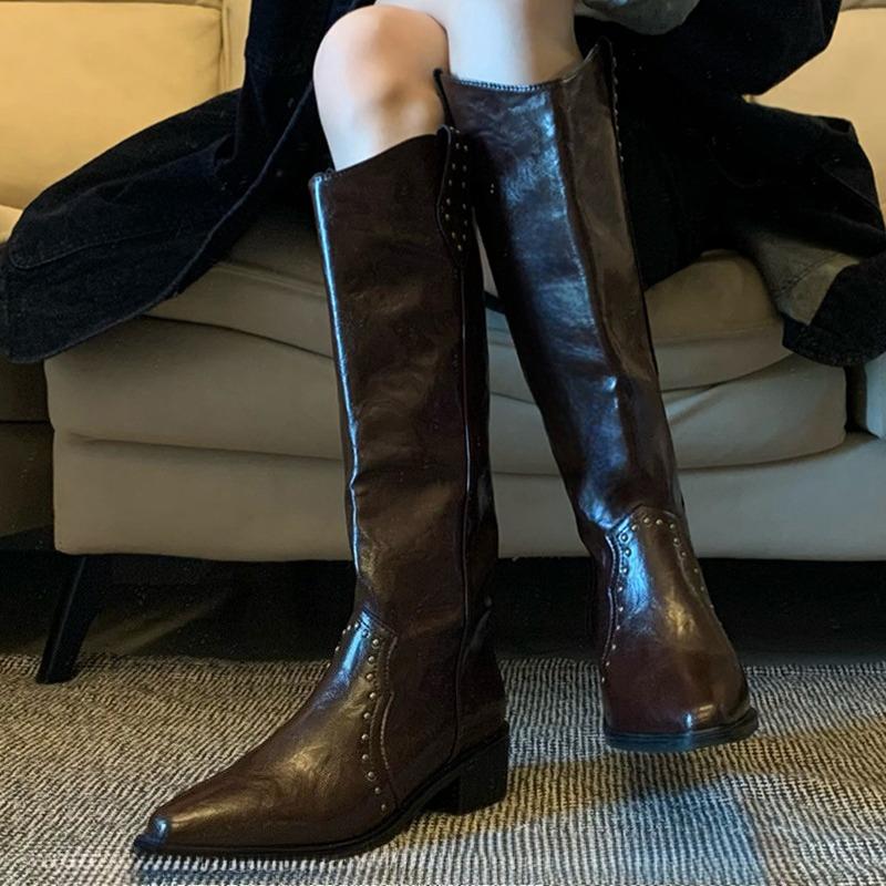 Fashion High Boots Women Fashion Dress Heeled Shoes Pointed Toe Knee High Woman Boots 2025 Winter New Designer Western Botas De Mujer