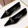 Fashion Luxury Metal buckle Women Flats Lady Sexy Evening Party shoes Patent leather Flat Shoes Women Sharp pointed flat heel shoes 2025