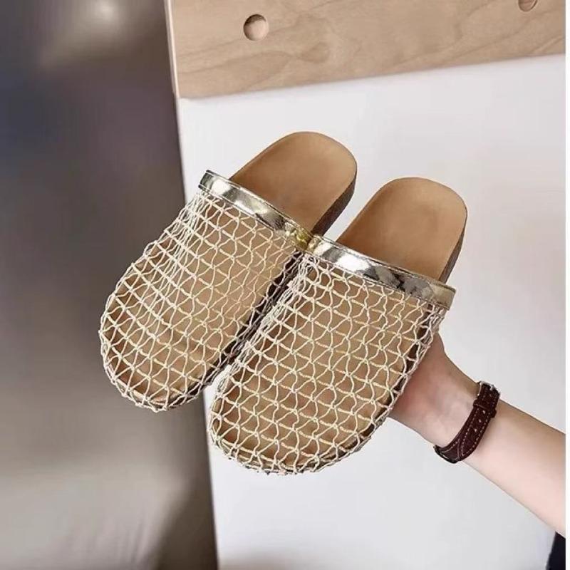 Fashion Round-toe Mesh Hollow-out Breathable Non-slip Wear-resistant Flat Shoes Women's Summer New Baotou Cool Slippers
