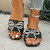 Fashion Women's flat shoes summer new square head open toe beaded butterfly knot soft sole anti-slip wear-resistant slippers