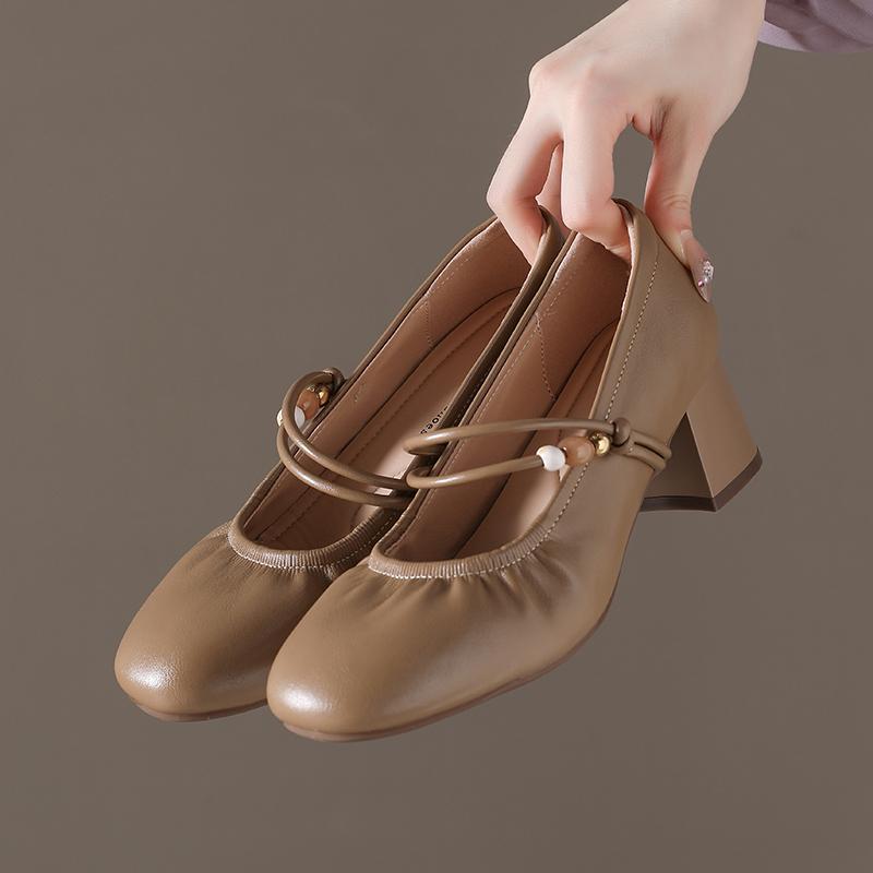 Fashion Round Toe Shallow Mouth Single Shoes Autumn New Slip-on Non-Slip Wear-Resistant Block Heel High Heels