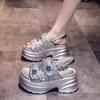 Fashion Silver Sequin Sandals Women's 2025 Summer New Open Toe Heightened Platform Slippers