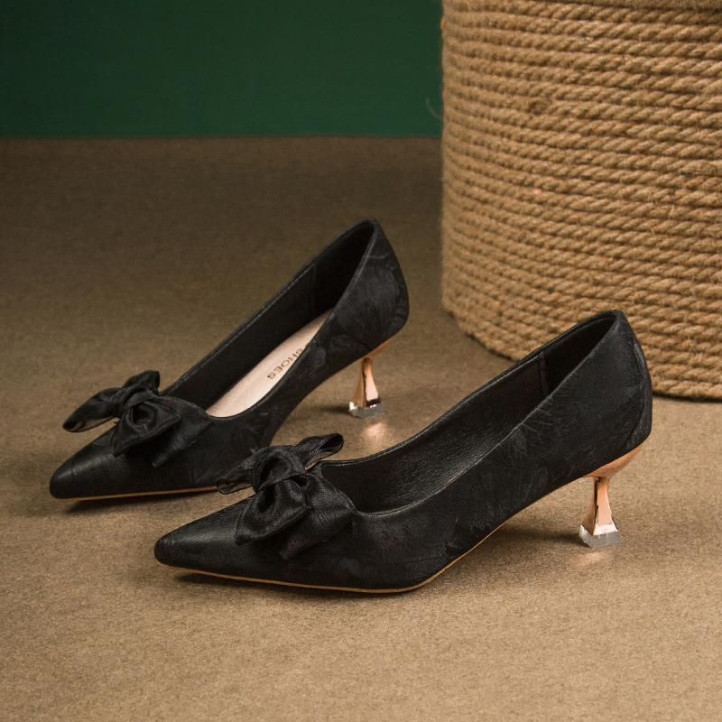 Fashion Bow Mid Heels Women Shoes Fad Shallow Elegant Sandals Designer Classical Brand Pumps 2025 Autumn Dance Party Zapatillas De Mujer