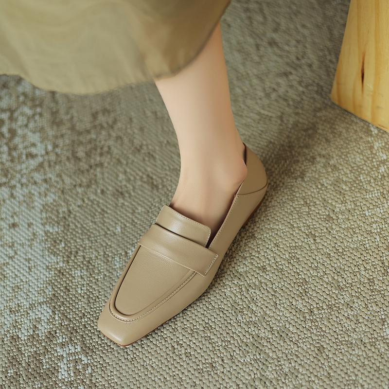 Fashion 2025 NEW Autumn Women Loafers Genuine Leather Women Shoes Square Toe Chunky Heel Shoes Women Flats Soft Ladies Shoes