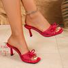 Fashion Niche bow-tied high-heeled slippers for women, French open-toe flip-flops, sexy outerwear with stiletto heels