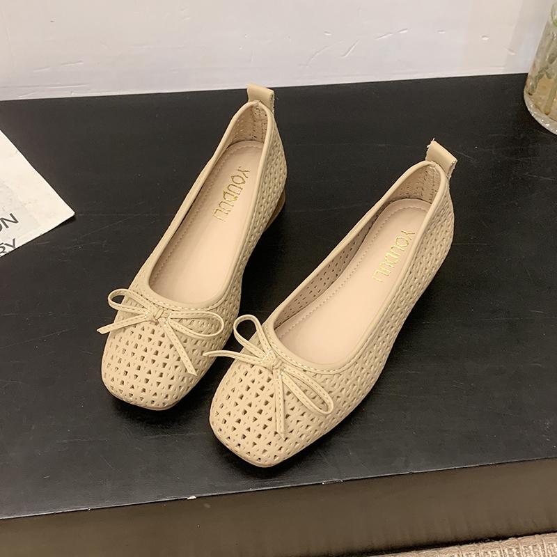 Fashion French Retro Woven Hollow out Toe Sandals Women Summer New Gentle Back Strap Thick Heel Single Shoes Rubber Sole Square Toe