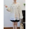 Three-dimensional flower splicing mesh design sense knitted cardigan autumn and winter new loose sweet sweater jacket women