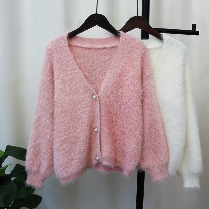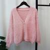Solid color imitation mink velvet knitted cardigan autumn and winter new loose soft waxy high-end sweater jacket women